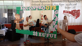 No domingo, dia 29 de julho, aconteceu na cidade de Gaspar - SC o Encontro Regional da OFS onde foi celebrado os 40 anos da promulgação da Regra e vida da OFS. Contamos com a presença de diversas fraternidades do nosso estado e, claro, a nossa fraternidade estava presente!!